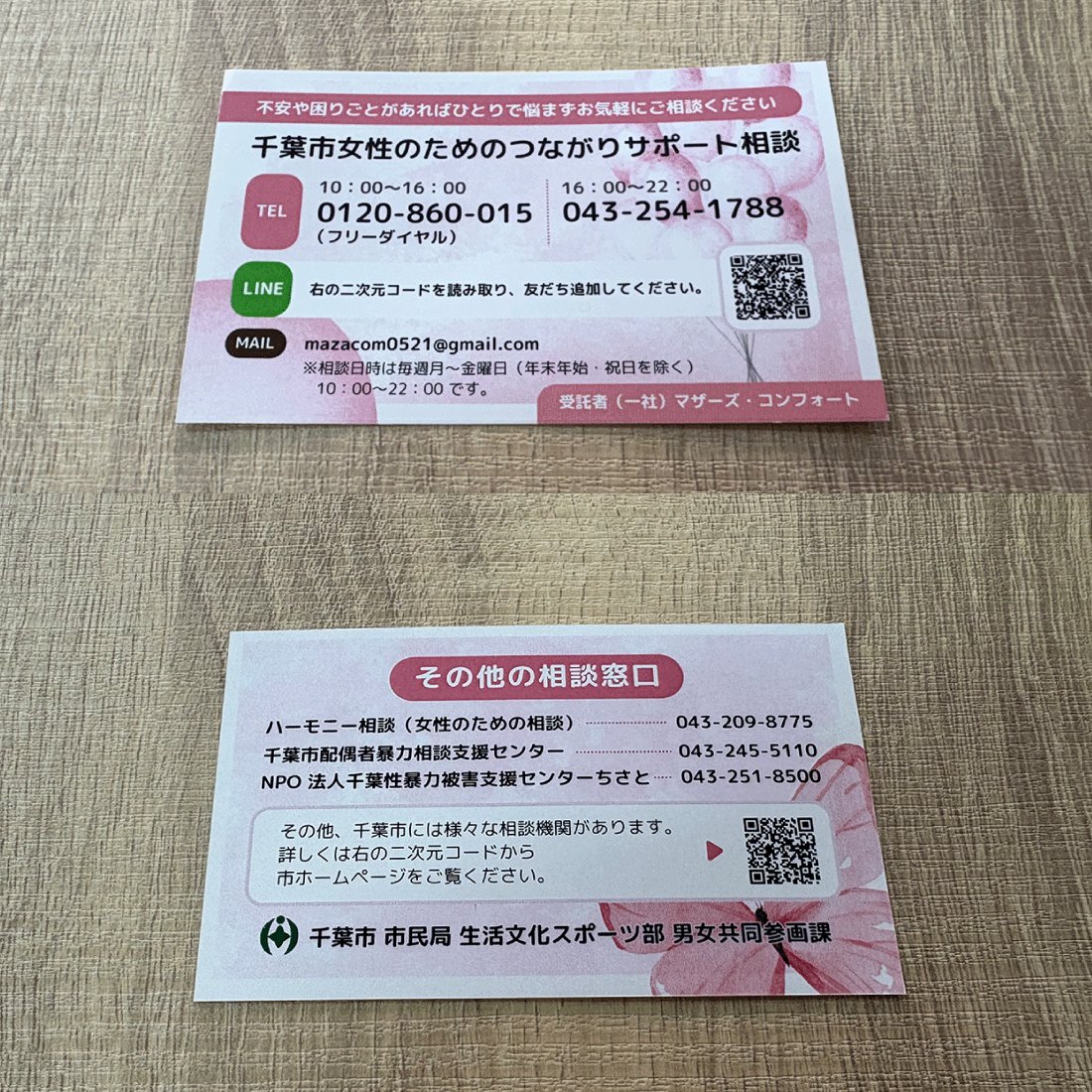 自治体の女性相談窓口を広く周知するための頒布物デザインを担当しました。年齢を問わず女性の相談を受け付ける方針を効果的に伝えるため、親しみやすさとフォーマルさのバランスが重要な課題でした。